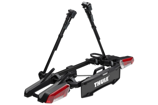 Der Thule OutPace bietet Platz für bis zu zwei Fahrräder und ist mit einer speziellen Klappfunktion ausgestattet, die den Platzbedarf beim Abstellen reduziert und das Schadensrisiko minimiert. Integrierte Lampen sorgen für Sichtbarkeit und Sicherheit.